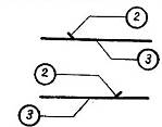 2. Đầu thanh cốt thép không có móc tròn hoặc móc vuông vẽ trên hình khai triển hoặc trên hình biểu diễn mà hình chiếu của thanh đó không trùng với hình chiếu của các thanh thép khác. |