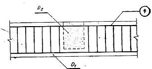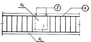 1.21. Ở chỗ giao nhau của cấu kiện (ví dụ: dầm ngang và dầm dọc, khung ngang và dầm dọc…), qui ước chỉ cần thể hiện cốt thép trong bộ phận của cấu kiện nằm song song với mặt phẳng bản vẽ mà không cần thể hiện cốt thép của bộ phận giao với nó (hình 4). Cốt thép của bộ phận này cần được thể hiện trong hình vẽ khác.