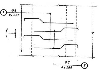 1.19. Trên hình biểu diễn chính cũng như trên hình khai triển; nếu số lượng một loại thanh thép nào đó khá lớn thì cho phép chỉ vẽ tượng trưng một số thanh nếu không sợ gây ra nhầm lẫn (hình 6).