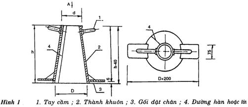1.1. Côn thử độ sụt là một khuôn hình nón cụt, được uốn hàn hoặc cán từ thép tôn dày tối thiểu 1,5mm. Mặt trong của côn phải nhẵn, không có các vết nhô của đường hàn hoặc đinh tán.