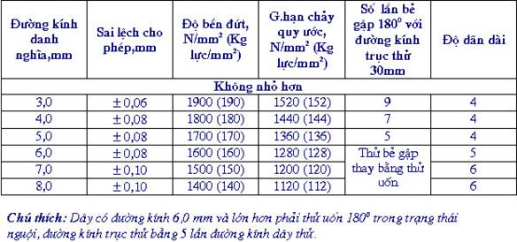 1.1. Cơ tính và kích thước của dây phải phù hợp với bảng 1