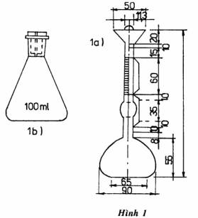 Bình khối lượng riêng (hình la) hoặc bình tam giác dung tích 100ml có nút thuỷ tinh và ống dẫn mao quản (hình 1b).