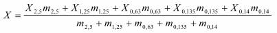 X2,5, X1,25, X0,63, X0,135; X0,14 : hàm lượng hạt của từng nhóm khoáng vật theo từng cỡ hạt tính bằng %.