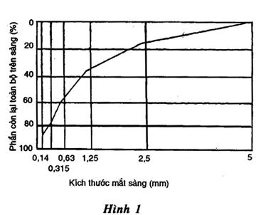 A2,5; A1,25; A0,63; A0,315; A0,14 – Lượng sót tích luỹ trên các sàng kích thước mắt sàng tương ứng là : 2,5; 1,25; 0,63; 0,815; 0,14mm.
