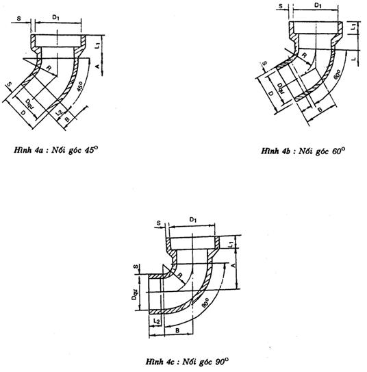 Ví dụ: Kí hiệu quy ước của mối nối góc 60o với đường kính lỗ thông quy ước Dqư = 50mm (hình 4b): nối góc 60o.50 TCVN 3786: 1994.