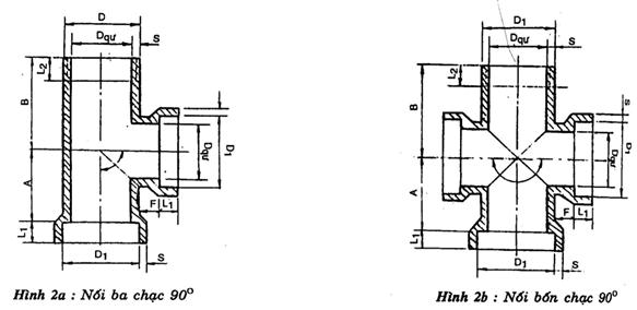 Ví dụ: Kí hiệu quy ước của mối nối bốn chạc 900 với đường kính lỗ thông quy ước Dqư = 100mm như sau: nối bốn chạc 900.100 TCVN 3786: 1994 (hình 2b).
