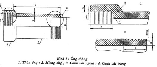 2.2. ở mặt ngoài đầu thân ống và mặt trong của miệng ống có rãnh xoắn.