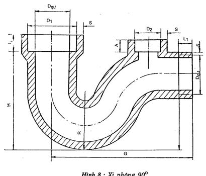 Ví dụ: Kí hiệu quy ước của xi phông 90o với đường kính lỗ thông quy ước Dqư = 50mm (hình 8): Xi phông 90o.100 TCVN 3786: 1994.