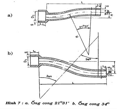 Ví dụ: Kí hiệu quy ước ống cong 34o với đường kính lỗ thông quy ước Dqư = 50mm (hình 7b); ống cong 34o.50 TCVN 3786: 1994.