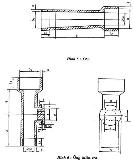 Ví dụ: Kí hiệu quy ước ống kiểm tra với đường kính lỗ thông quy ước Dqư = 50mm (hình 6); ống kiểm tra 50 TCVN 3786: 1994.