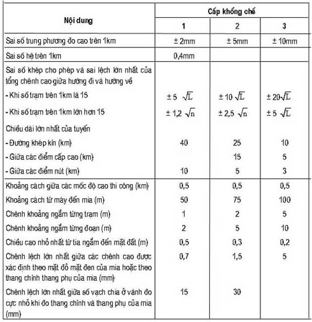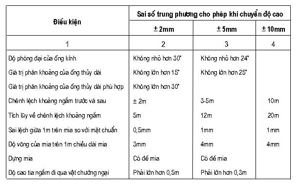 – Độ cao mặt mốc so với độ cao thiết kế ở công trường không được chênh nhau quá lớn ;