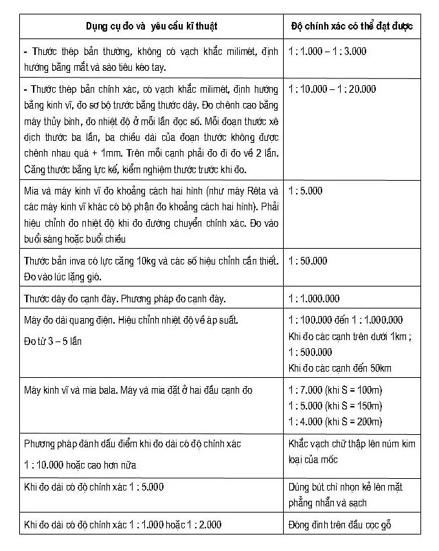 Độ chính xác đo cạnh đáy phải tính cụ thể theo yêu cầu của từng loại công trình.