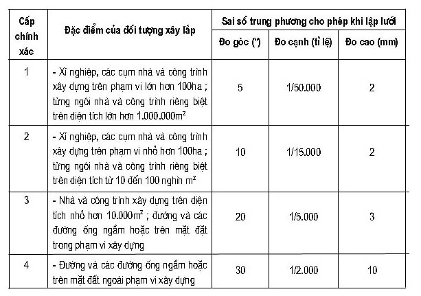 Bảng 1- Sai số trung phương cho phép khi lập lưới khống chế thi công