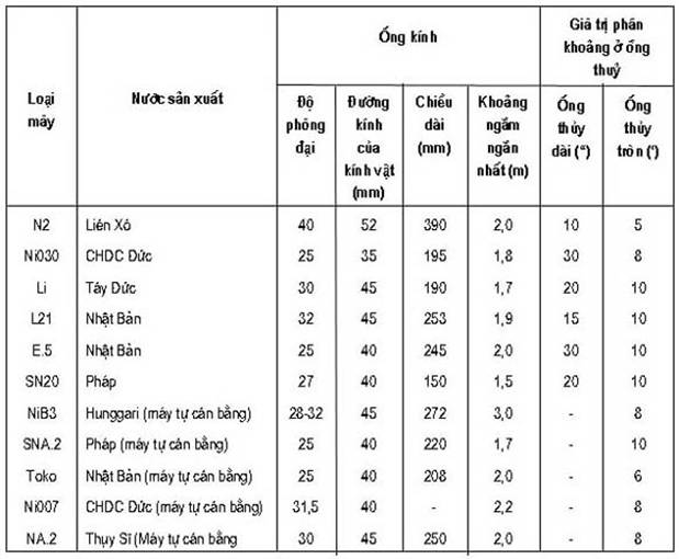 PHÂN CẤP CHÍNH XÁC MÁY KINH VĨ
