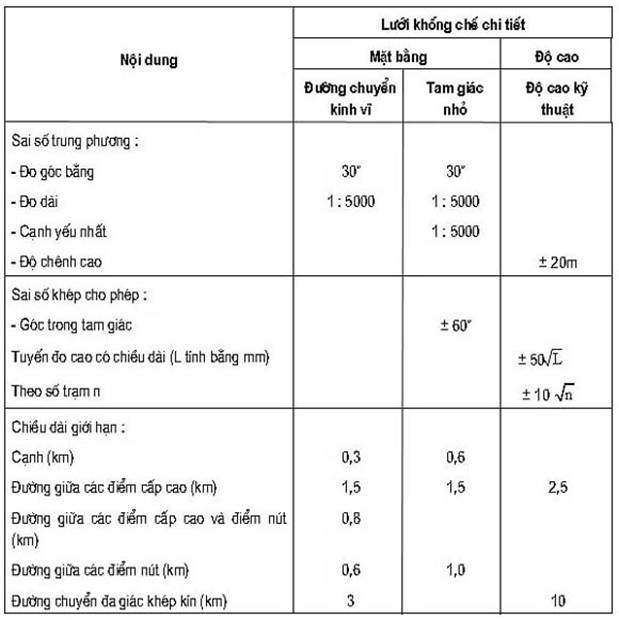CÁC YÊU CẦU CƠ BẢN CỦA LưỚI KHỐNG CHẾ MẶT BẰNG VÀ ĐỘ CAO CHI TIẾT