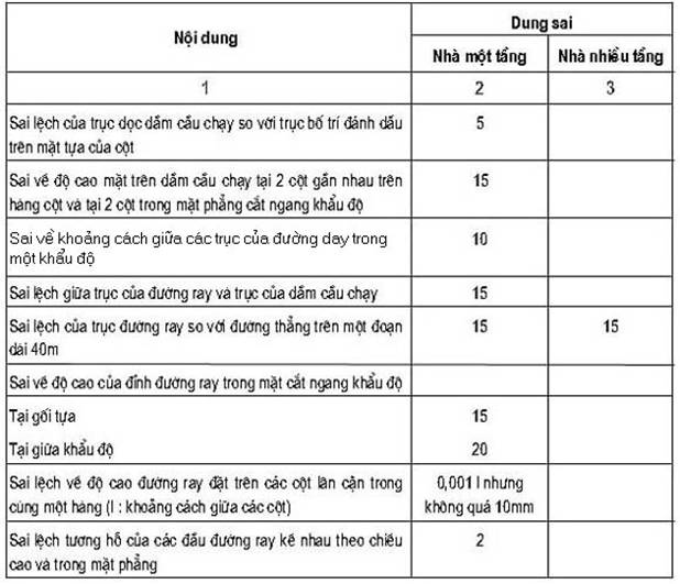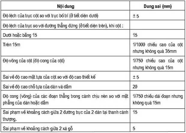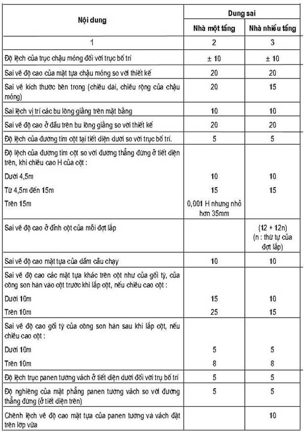 Dung sai cho phép khi lắp ghép các kết cấu bê tông cốt thép đúc sẵn nhà công nghiệp