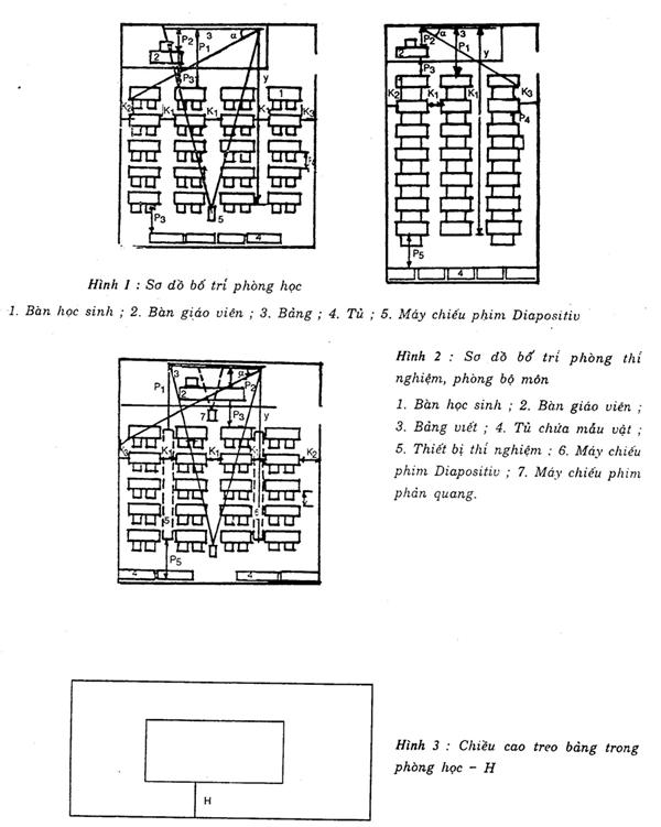 Chú thích: Trong các phòng học phải bố trí nguồn sáng thành từng dãy song tường có cửa sổ chính lấy ánh sáng.