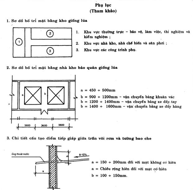 3.9. Các kích thước cơ bản của các công trình xây dựng ở kho giống lúa phải tuân theo tiêu chuẩn “Nhà nông nghiệp. Thông số hình học”. TCVN 3906: 1984.
