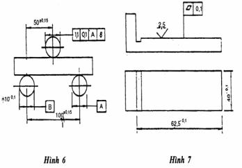 1.6. Thiết bị xác định giới hạn bền uốn. Để xác định giới hạn bền uốn cửa các mẫu thử có thể dùng các loại máy khác nhặu, nhưng phải thoả mãn các yêu cầu sau đây. Tốc độ trung bình nâng tải trọng (5 ± 1). 105N/m2 trong một giây. Các trục gối và trục truyển tải trọng phải thật song song, trục truyền tải trọng phải nằm trong mặt phẳng giữa các trục gối: Bộ phận giữ trục truyền tải trọng phải có một trục cầu. Các chi tiết này phải làm bằng thép không gì hoặc hợp kim cứng, khoảng cách giữa các đường tâm cửa trục đối, đường kính trục được mô tả ở hình 6.