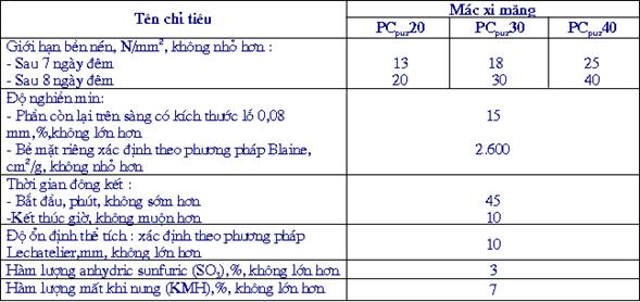 3.3. Xi măng poóc lăng puzôlan gồm 3 mác : PCpuz20 : PCpuz30 : PCpuz40