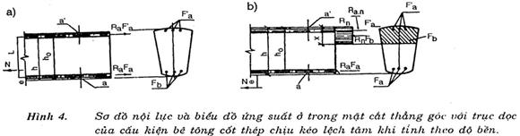 ở mặt cắt thẳng góc với trục dọc của cấu kiện bê tông chịu nén lệch tâm được tính không xét tới độ bền của bê tông vùng chịu kéo;
