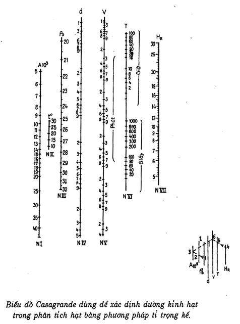 A.2.2. Khi xác định đường kính của các hạt theo tính toán đồ thị thì dùng sơ đồ đọc trên tỉ trọng kế được tiến hành theo thứ tự sau đây: