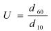 Độ không đồng nhất của đất được biểu diễn bằng hệ số không đồng nhất U – là tỉ số giữa các đường kính hạt ứng với các lượng chứa 60 và 10% so với tổng khối lượng mẫu đất phân tích thành phần hạt, được xác định theo công thức (10):