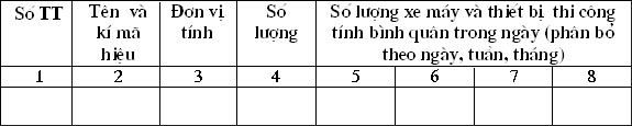 Từ cột (4) đến cột (5) ghi theo phân số (tử số ghi số lượng xe máy, thiết bị ,mẫu số ghi số lưọng ca máy).