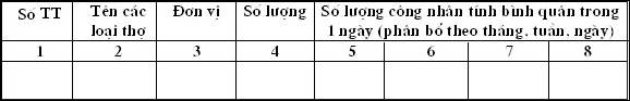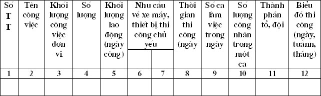 2) Căn cứ vào yêu cầu thi công của từng hạng mục công trình, ở cột (5) có thể ghi số lượng chung công nhân cần thiết theo tuần hoặc ngày.