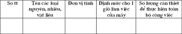 3. Các nhu cầu về nguyên, nhiêu liệu, vật liệu cho máy hoạt động (bảng 3)