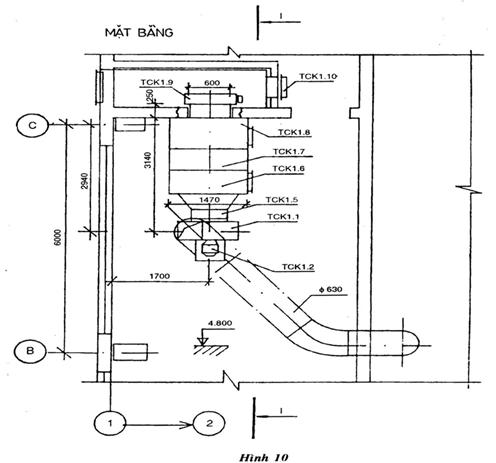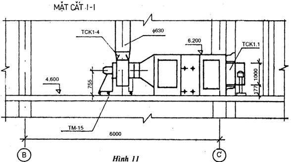 – Cách trình bày mặt bằng và mặt cắt thiết bị thông gió và sưởi xem hình vẽ 10, 11,12 và 13.