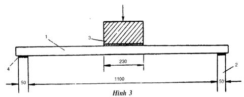 Mẫu thử (l) được đặt lên trên 2 gối đỡ (2) cố định, cứng, phẳng, song song, chiều rộng mỗi gối đỡ là 50mm để lại giữa chúng một khoảng cách là 1,10m. Các gối đỡ phải vuông góc với các sóng. Tấm sóng được chất tải ở khoảng giữa hai gối đỡ bằng thanh tỳ uốn (3), cứng, phẳng, rộng 230mm song song với các gối đỡ. Gia các gối đỡ với mẫu cũng như giữa mẫu và thanh tỳ uốn có lót các mảnh dạ mềm (4) hoặc cao su dày khoảng 10mm và rộng bằng chiều rộng gối đỡ và thanh tỳ uốn. Sau khi mẫu đã được đặt đúng vị trí, tiến hành chất tải với tải trọng tăng dần đều sao cho sau 25 – 40s mẫu gãy. Kết quả là tải trọng bẻ gẫy mẫu tính theo 1m chiều rộng tấm, chính xác đến lN.