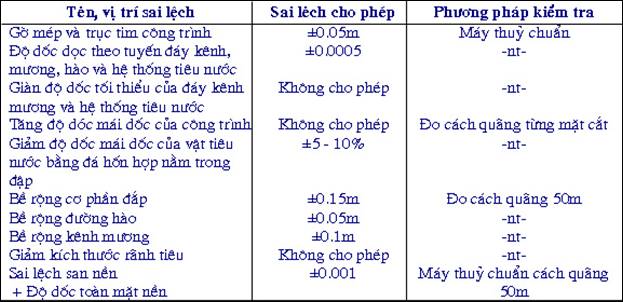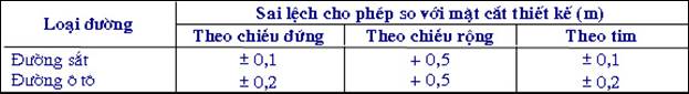10.13. Sai lệch cho phép của bộ phận công trình đất so với thiết kế không được vượt quá quy định trong bảng 33.