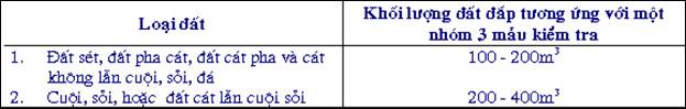 – Chất lượng đắp đất, khối lượng thể tích khô;