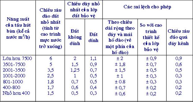 Trường hợp thi công bằng cơ giới thuỷ lực và nạo vét luồng lạch, đối với từng loại máy kích thước đã quá cỡ do thiết kế quy định.