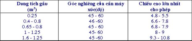 + Lớn hơn 2/3 chiều rộng gầu xúc – đối với máy đào gầu ngửa và gầu sấp.