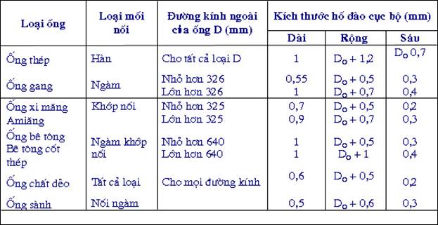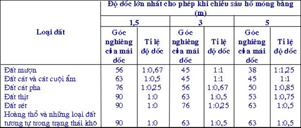 – Trong giới hạn những hố nông (chiều sâu nhỏ hơn 0,5m) như móng nhỏ, hào, kênh mương ;