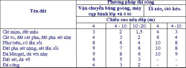 – Trong giới hạn nền đường sắt có chiều cao đất đắp bất kì và nền đường bộ chiều cao đất đắp nhỏ hơn 1,5m;