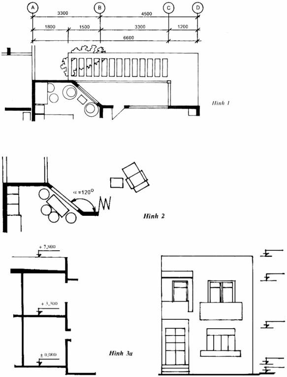 1.3.1. Cao độ trên mặt cắt và mặt hiện, mặt đứng ghi theo đường dóng từ các kết cấu và các bộ phận của nhà, công trình (hình 3a). Cao độ trên mặt bằng ghi ngay tại cao độ cần ghi (hình 3b) hoặc dẫn ra ngoài hình vẽ như quy định trong điều 1.3.2. dưới đây.