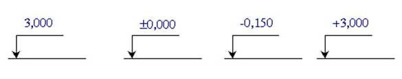 Kí hiệu cao độ là mũi tên hình tam giác đều, tô nửa đen nửa trắng, độ cao của tam giác bằng độ cao của chữ số ghi cao độ.