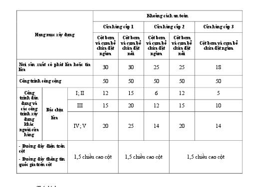 3. 3. Khoảng cách an toàn trong bảng 3 có thể giảm 30% khi cửa hàng có lắp đặt hệ thống thu hồi hơi xăng dầu.