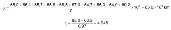 Với n = 10 và a = 0,005 ta có h = 3,122 vì t1 > h nên có thể coi y10 = 60 200 km là bất thường và có thể loại bỏ.