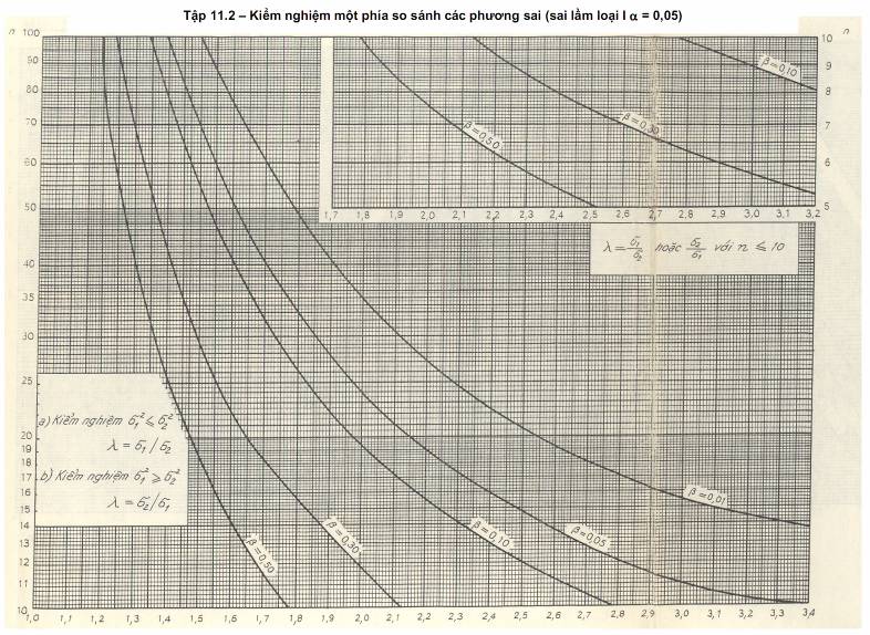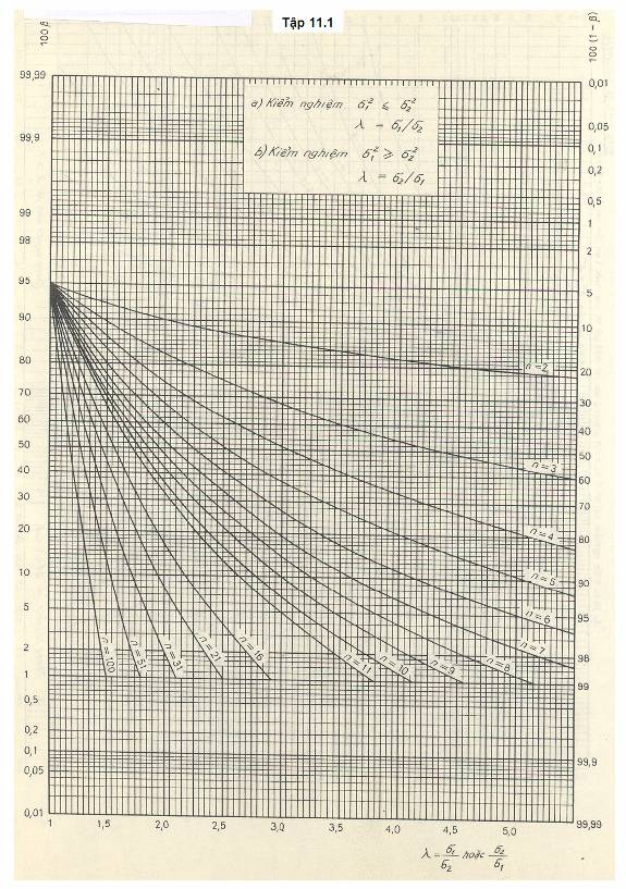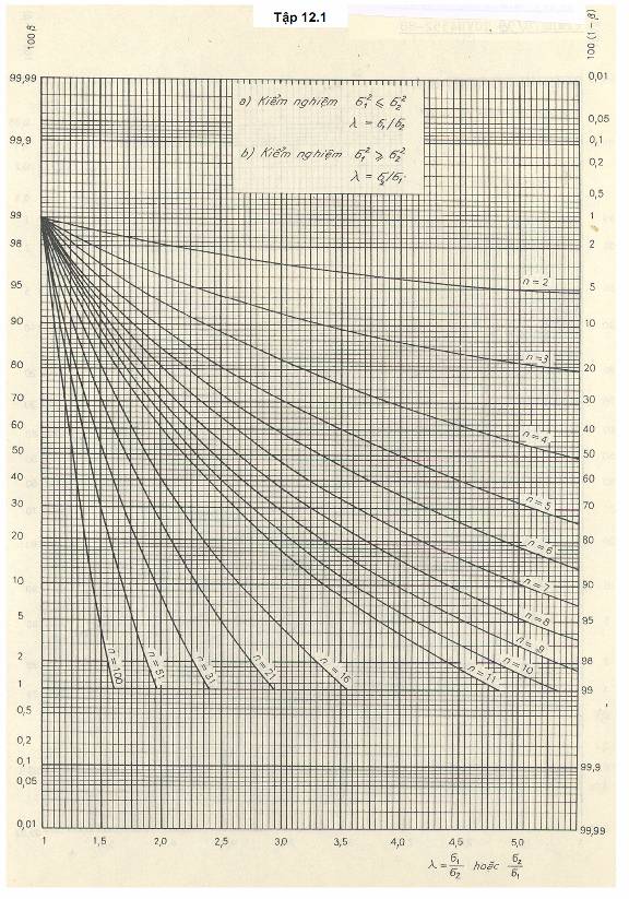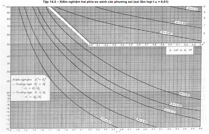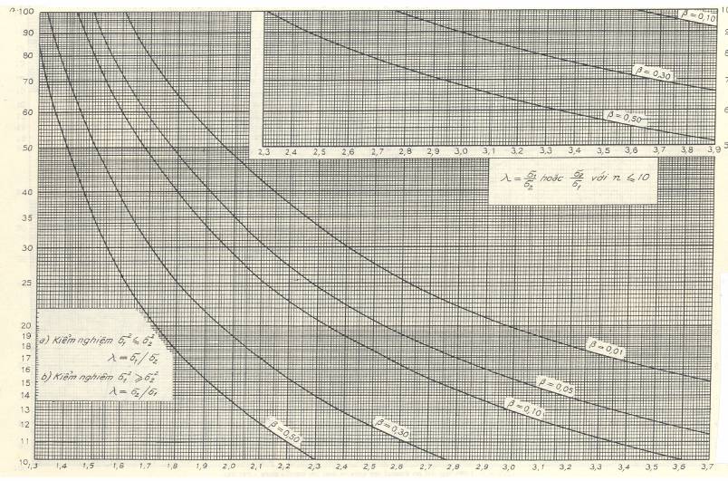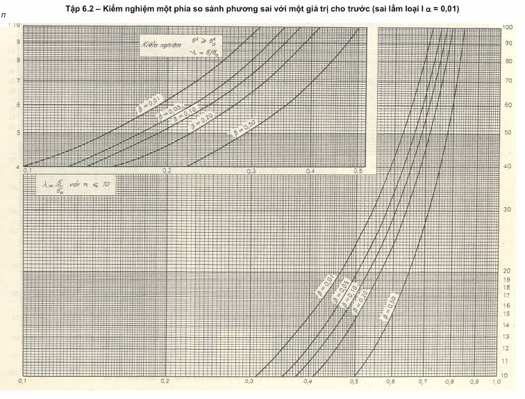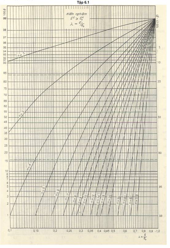 Text Box: TCVN 4552 : 2009Tập 10.2 – Kiểm nghiệm hai phía so sánh phương sai với một giá trị cho trước (sai lầm loại I a = 0,01)