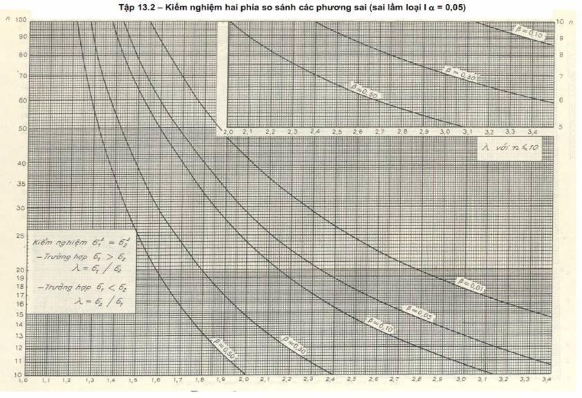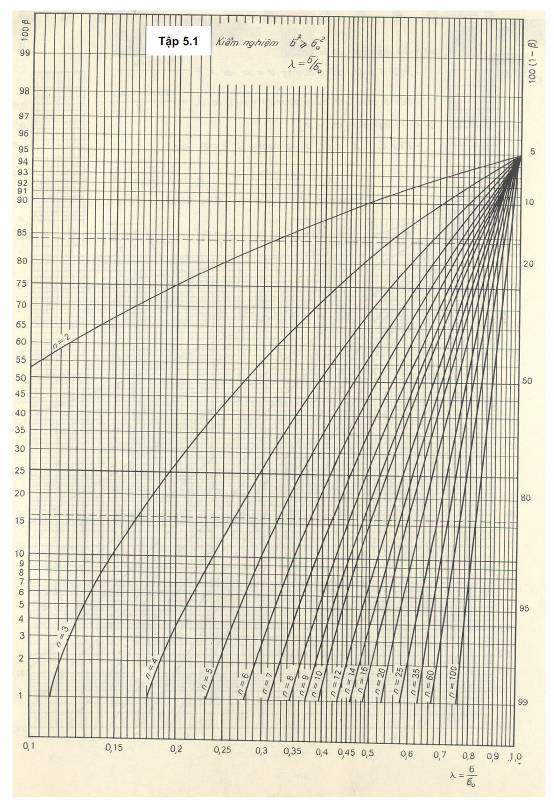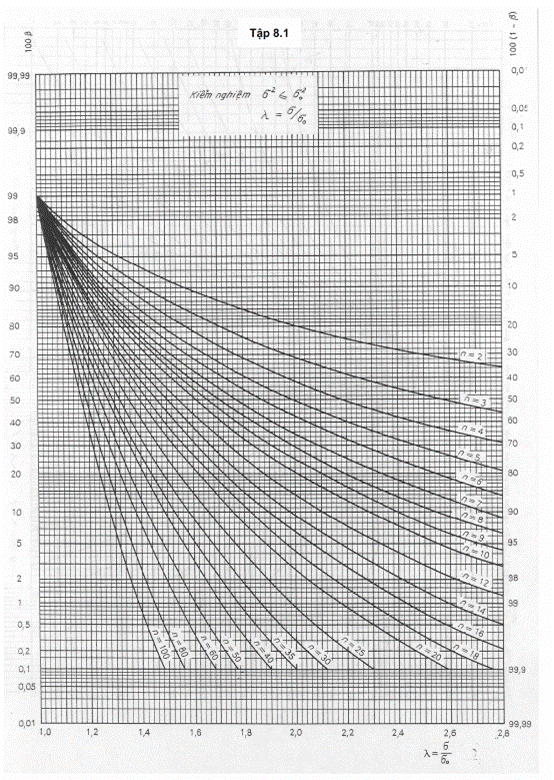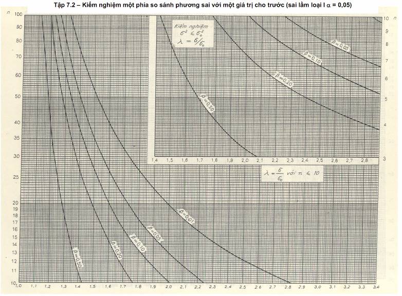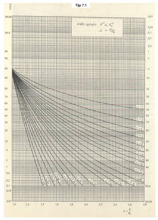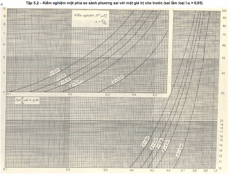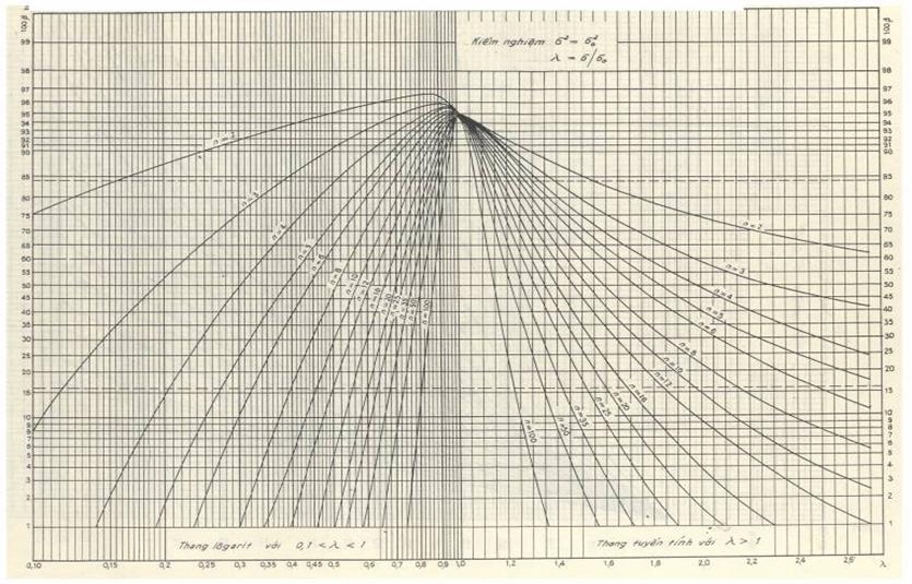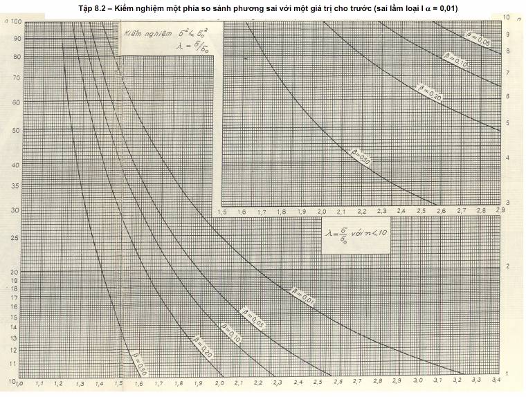 trong đó  (v) và (v) lần lượt là – phân vị và – phân vị của phân bố c2 với v = n – 1 bậc tự do. Các giá trị  (v) và  được cho trong Bảng B.5, Phụ lục B với a = 0,05 và a = 0,01.