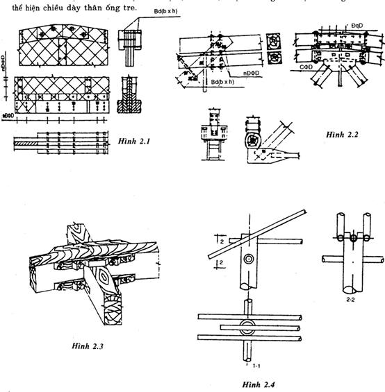 4. Kết cấu tre và họ tre nứa. Ví dụ minh hoạ (hình 2.4). Mặt cắt ống tre được vẽ bằng hai nét để thể hiện chiều dày thân ống tre.