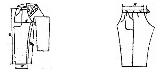 Quần: Đính ở chân cạp đường may dọc.