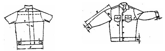 Hình dáng và hướng dẫn đo thành phẩm quần áo bảo hộ lao động dùng cho nam công nhân đi lô cao su.