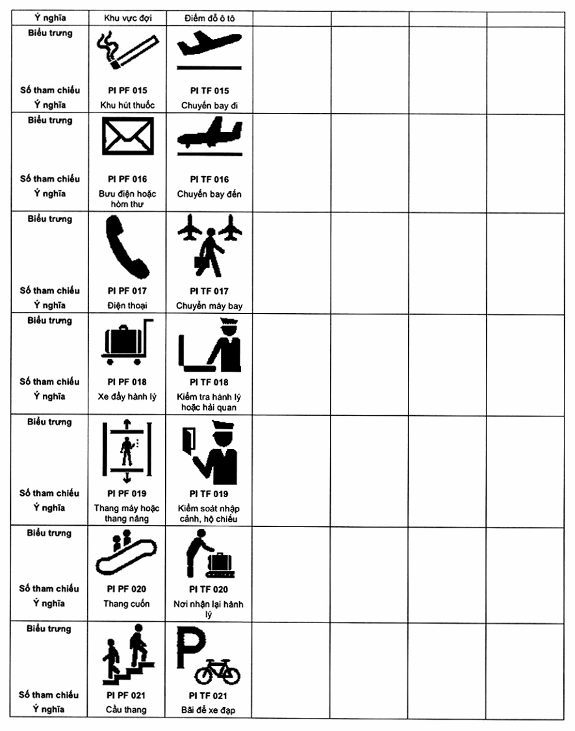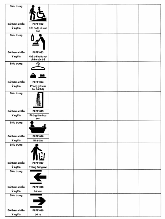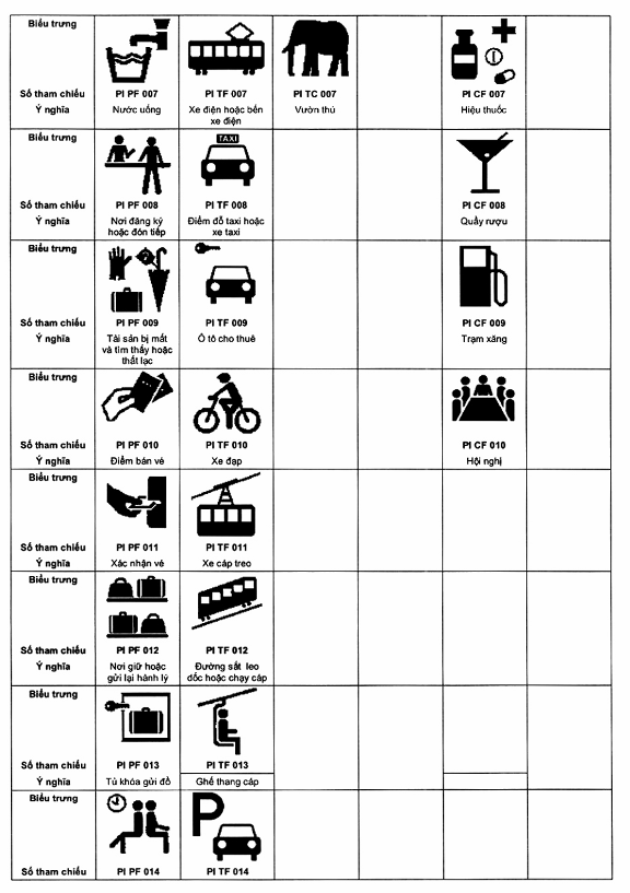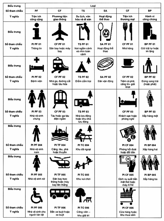 Bảng 8 – Biểu trưng thông tin công cộng – Hành vi nơi công cộng (không bao gồm các ký hiệu an toàn)