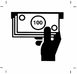 Hình vẽ tay đang rút tờ tiền giấy từ khe máy |