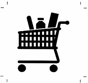 Hình vẽ nhìn nghiêng xe đẩy của cửa hàng với các hàng hóa mua sắm |